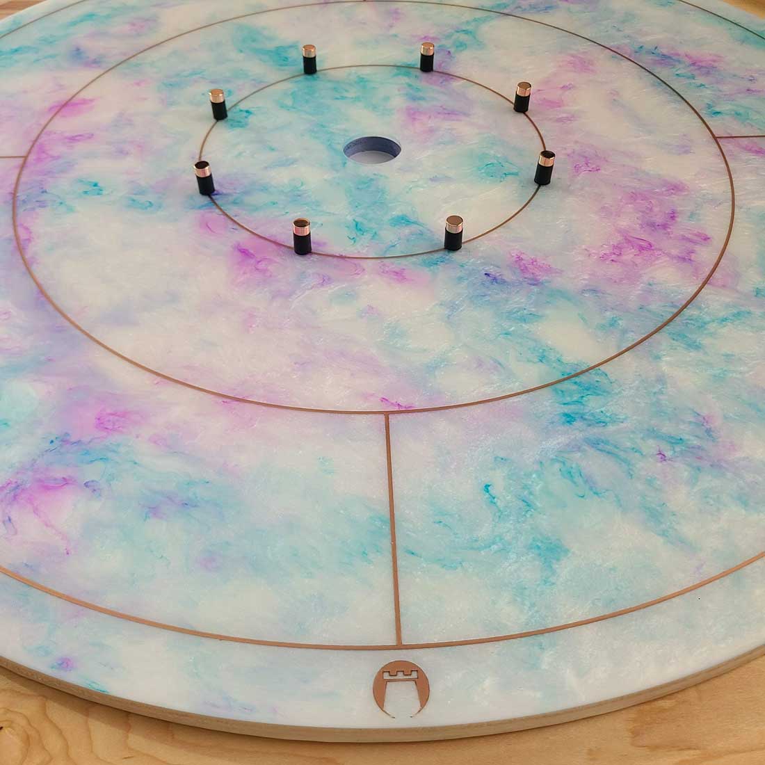 Unique Features: With our thicker playing surface, your discs in the gutter won't interfere with out-of-play shots. Plus, we've created beautiful pegs you won't find elsewhere. The reflex post, topped with stainless caps accentuate your board and match the lines, giving it extra beauty.