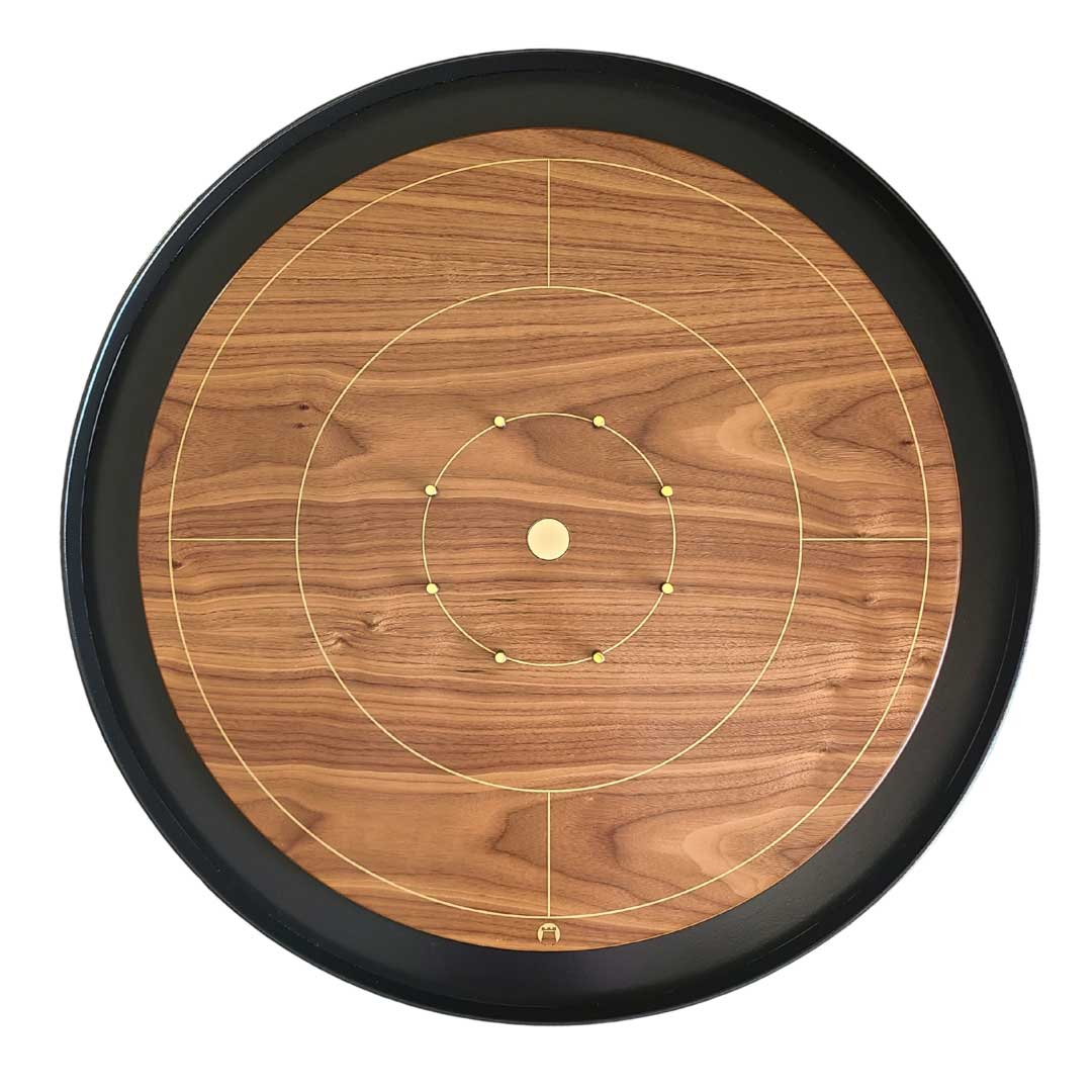 Durable Finish: A smooth polished resin, tops the 1/2" walnut playing surface, creating a classic look. The play is encompassed by a contrasting black wooden base with heavy duty rubber feet.