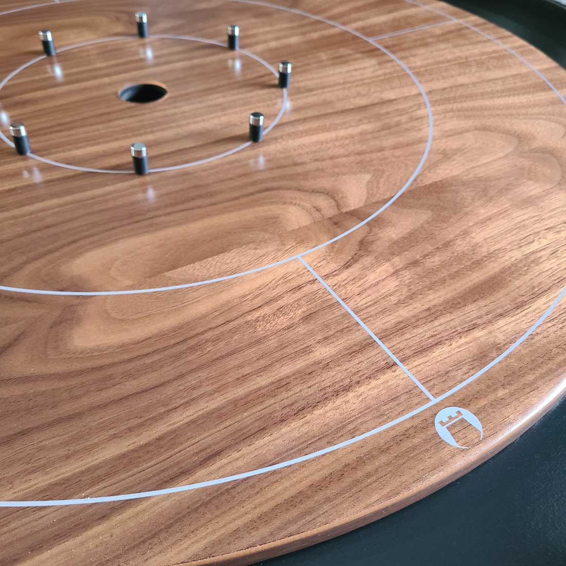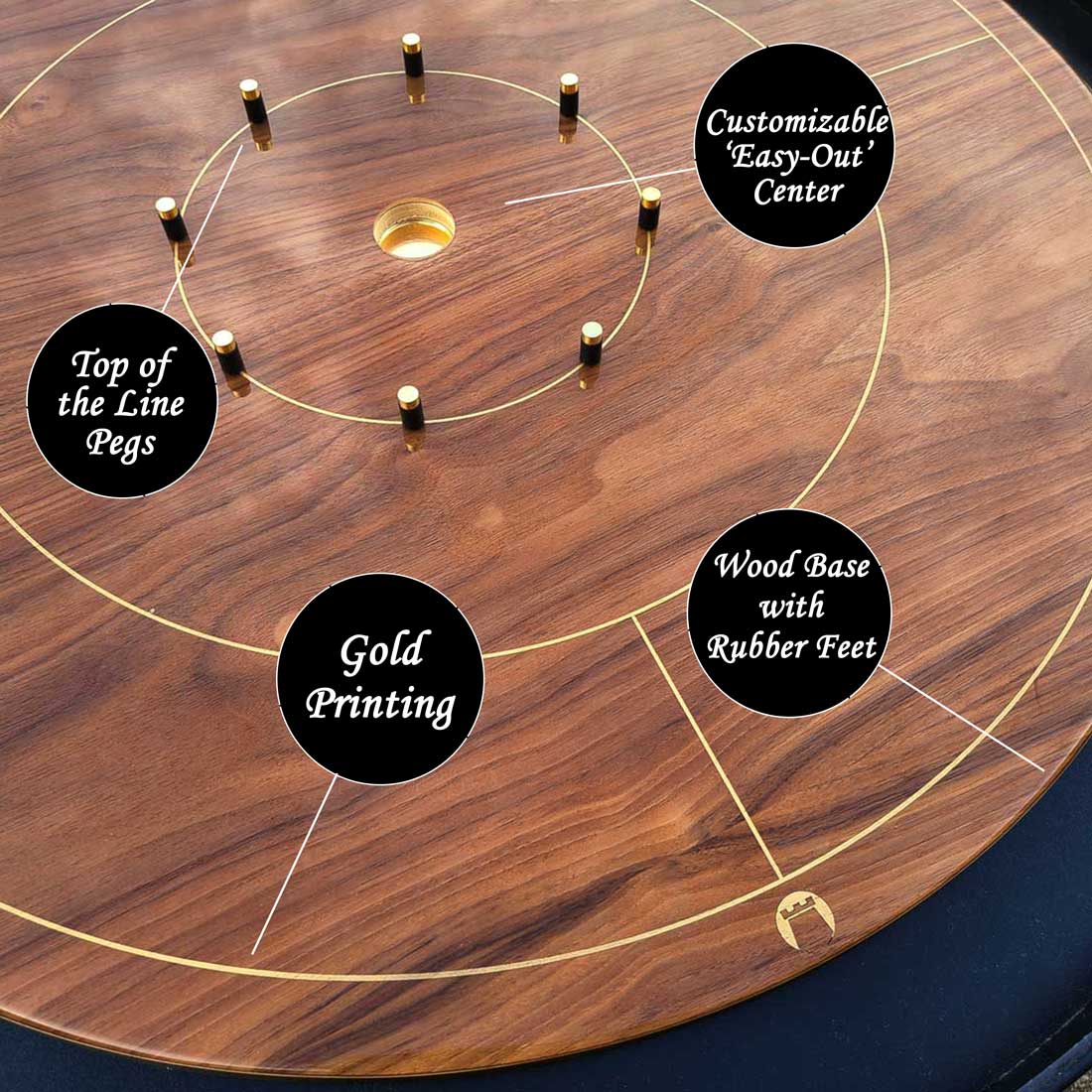 Unique Features: With our thicker playing surface, your discs in the gutter won't interfere with out-of-play shots. Plus, we've created beautiful pegs you won't find elsewhere. The reflex post, topped with stainless caps accentuate your board, giving it extra beauty and matching your silver quadrant lines.