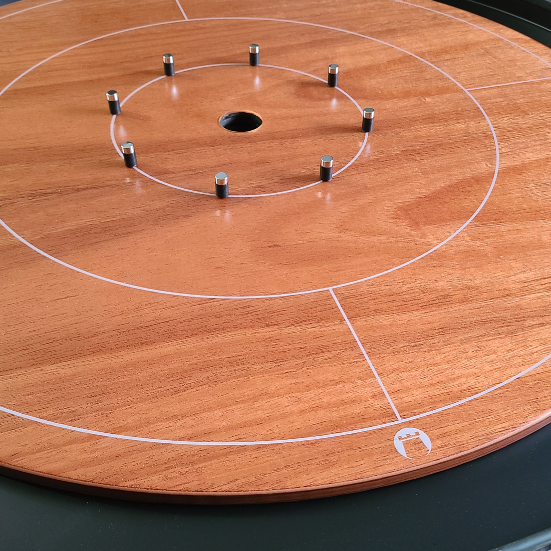 Unique Features: With our thicker playing surface, your discs in the gutter won't interfere with out-of-play shots. Plus, we've created beautiful pegs you won't find elsewhere. The reflex post, topped with stainless caps accentuate your board and match the lines, giving it extra beauty.