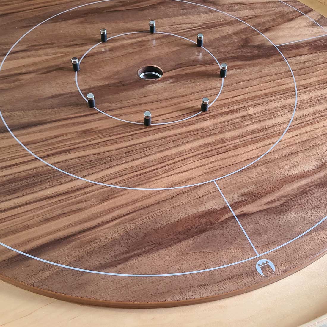 Unique Features: With our thicker playing surface, your discs in the gutter won't interfere with out-of-play shots. Plus, we've created beautiful pegs you won't find elsewhere. The reflex post, topped with stainless caps accentuate your board, giving it extra beauty and matching your silver quadrant lines.