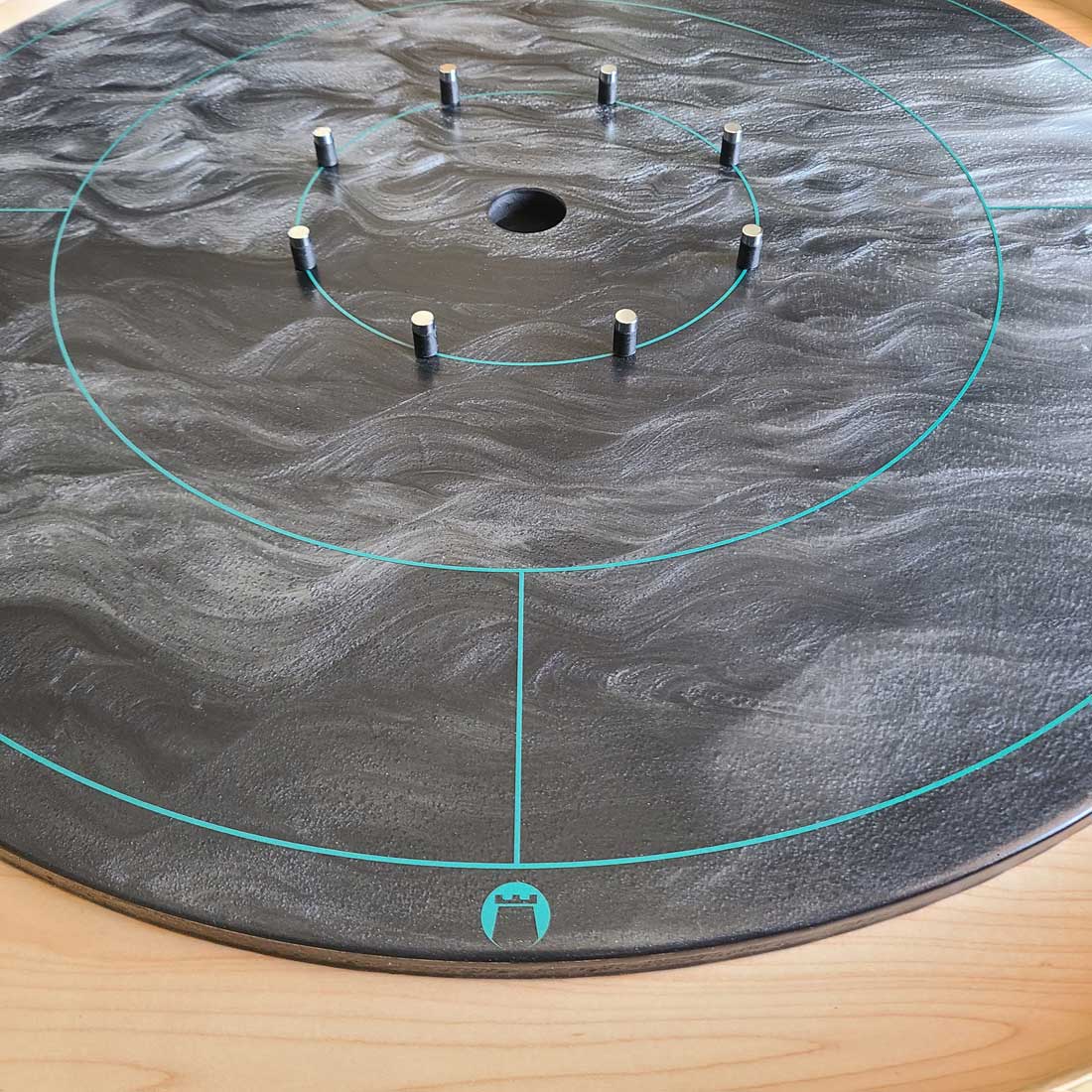 Unique Features: With our thicker playing surface, your discs in the gutter won't interfere with out-of-play shots. Plus, we've created beautiful pegs you won't find elsewhere. The reflex post, topped with stainless caps accentuate your board, giving it extra beauty.