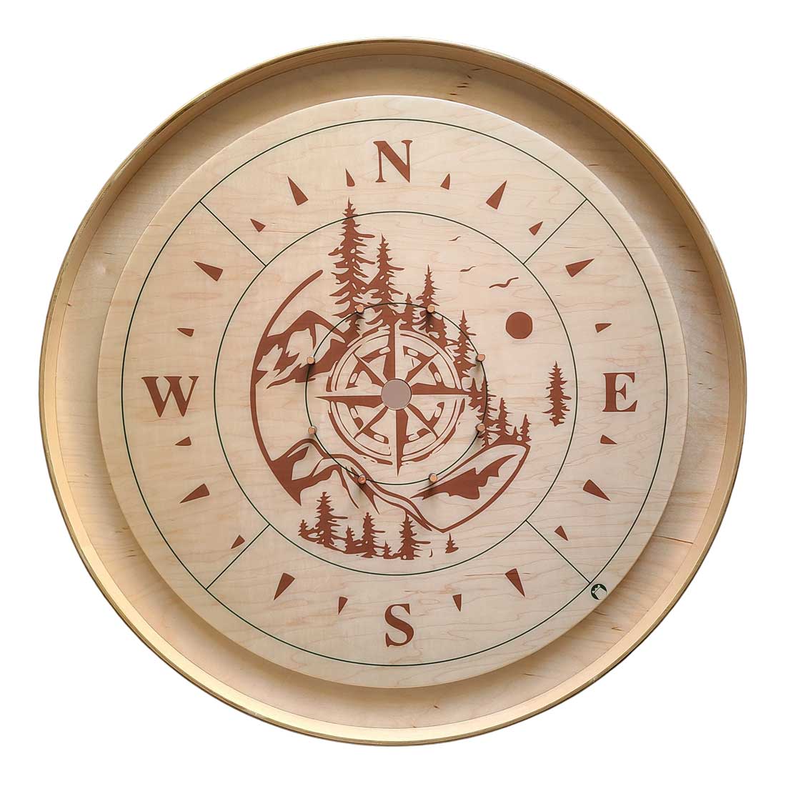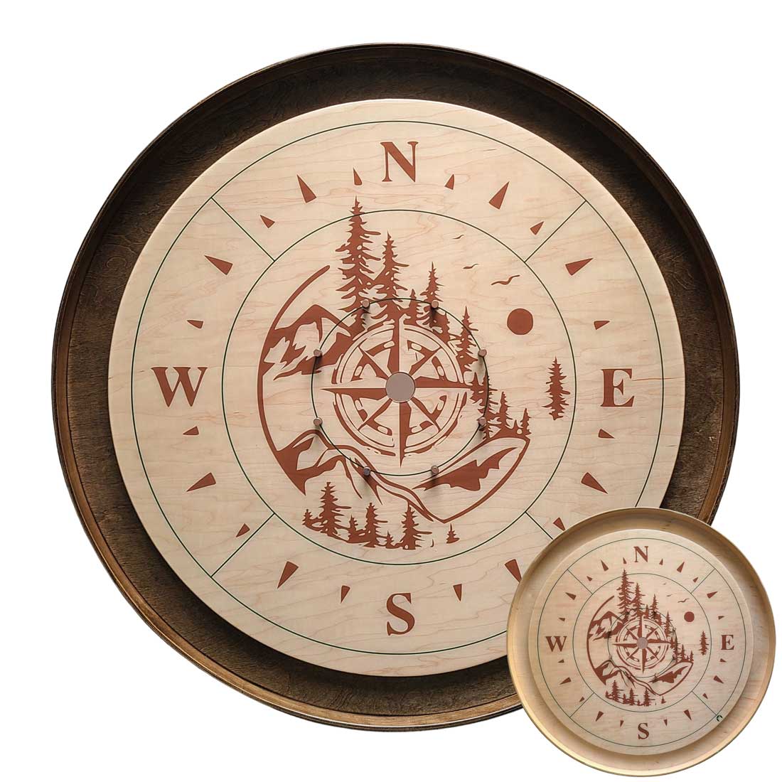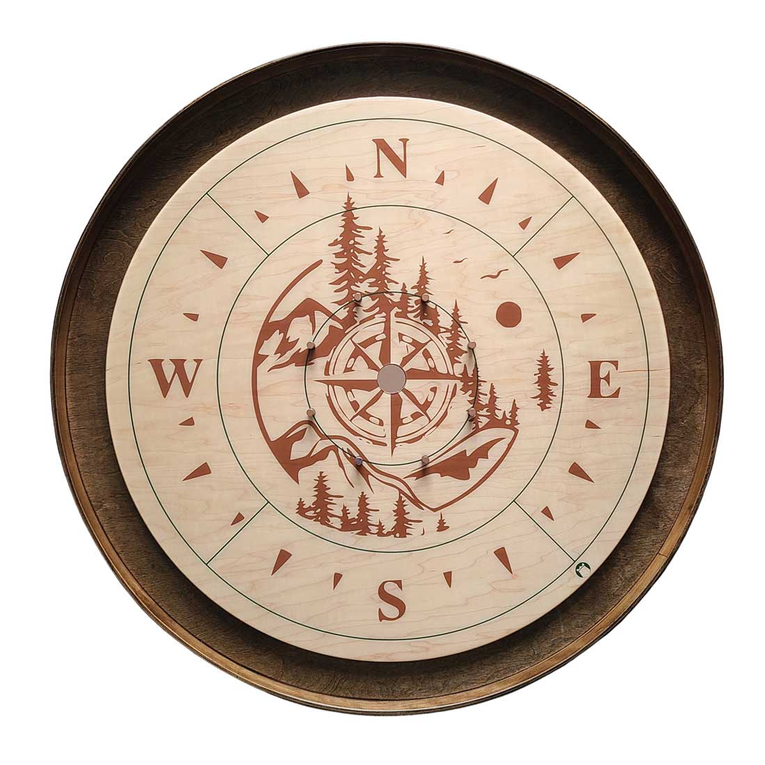 The greatest game night adventure comes with the Wayfarer Crokinole board featuring a compass rose on your choice of rail.