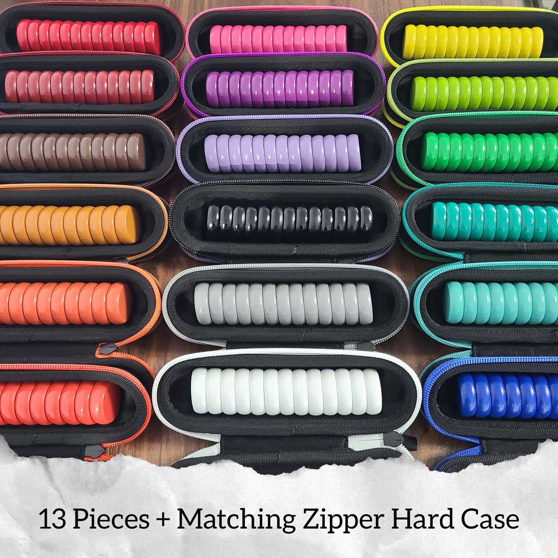 CONVENIENT STORAGE because no one likes using reseal-able plastic bags that break and make it hard to put your pieces away. Our hard shell zipper case keeps all of your discs at the ready and the color coordinated zipper makes it easy to choose your players’ color!