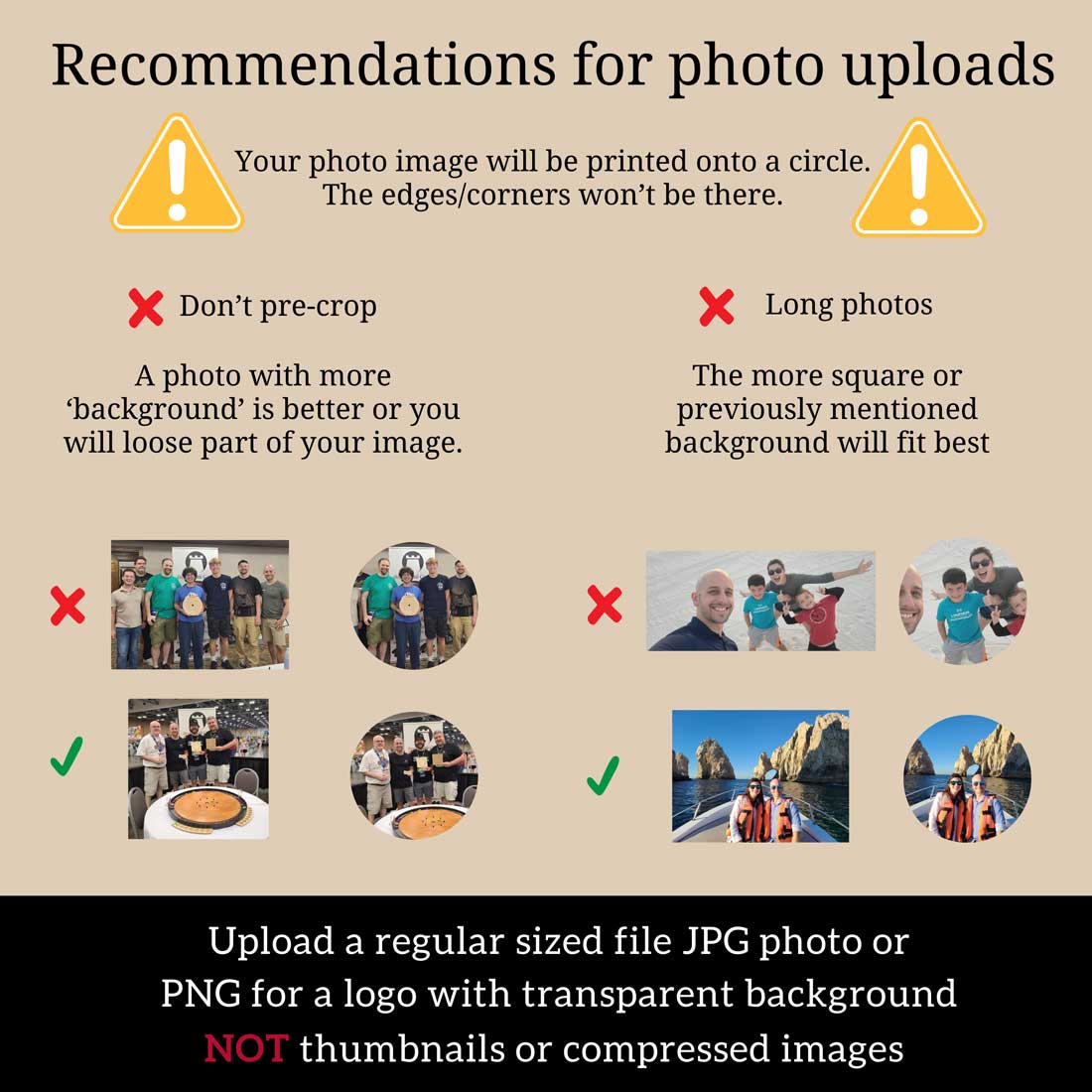 *Prints will be completed with the image as uploaded. Square images are preferred for minimal image clipping on the round surface.