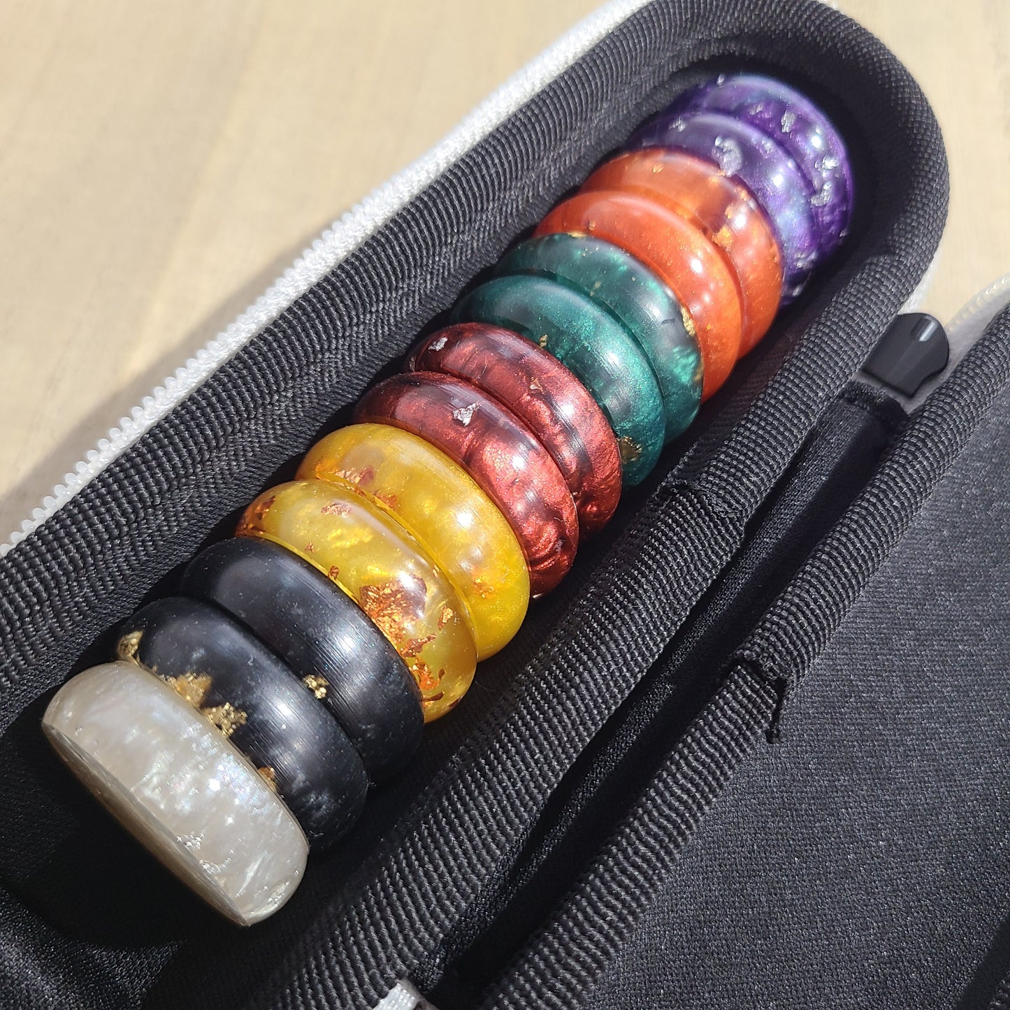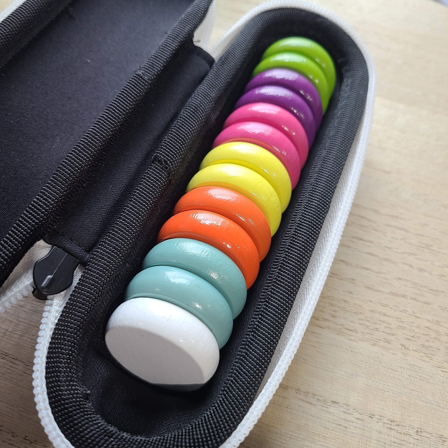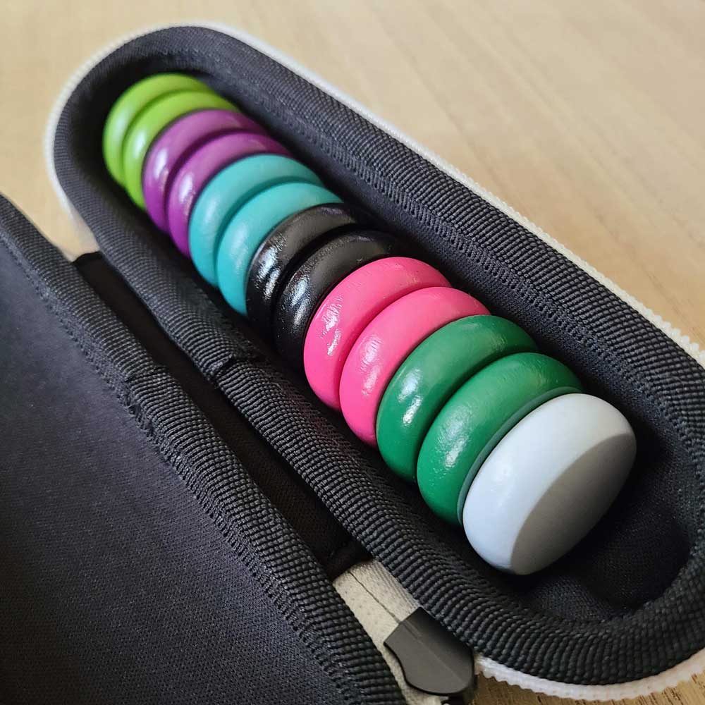 Multi-Color Crokinole Disc Pairs, With Hard Carry Case, 13 Discs