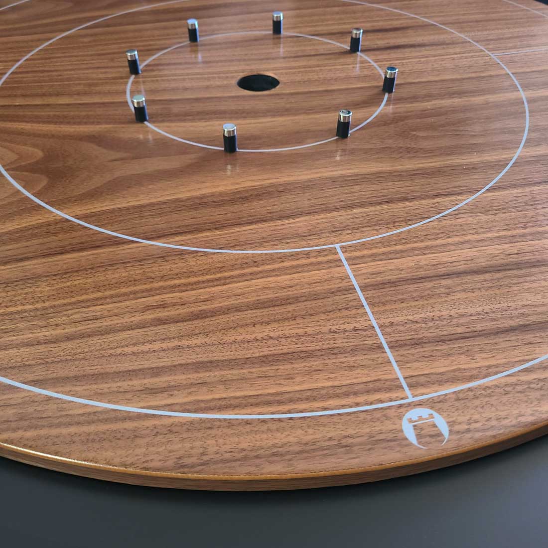 Unique Features: With our thicker playing surface, your discs in the gutter won't interfere with out-of-play shots. Plus, we've created beautiful pegs you won't find elsewhere. The reflex post, topped with stainless caps accentuate your board, matching the lines and rail for extra beauty.
